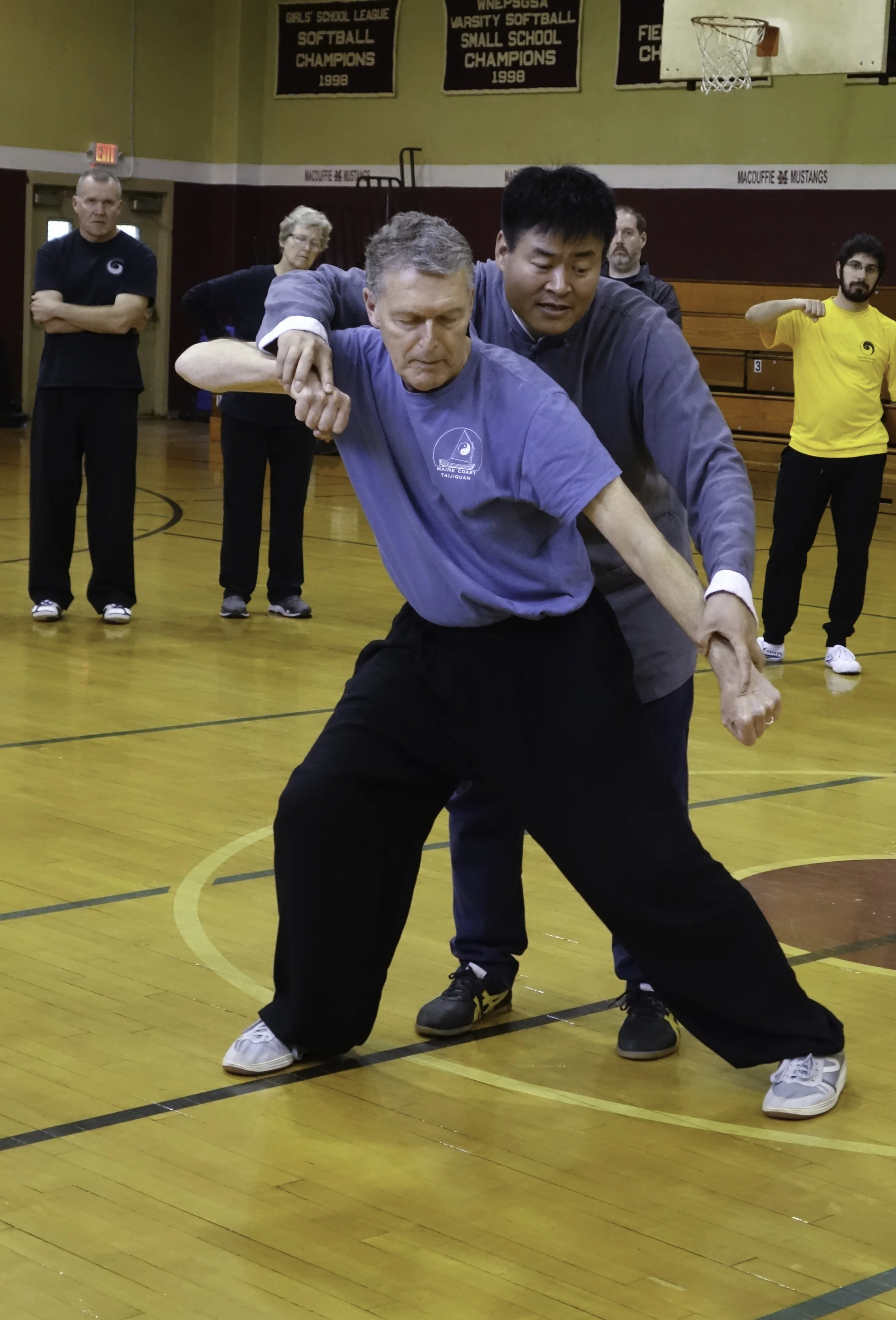 The "monkey mind" is never still. The mind roams topic to topic often unbidden and untrained. In taiji, as we train, keep bringing the mind back into the body. The mind wanders; we bring the mind back to the body. What muscles are felt and how, and how are they connected? Where are we heavy or light, tight or loose? How is the foot connected to the hand? Do we notice how the dantian is connected to the body in each movement. What is the breathing like? Is the breath long, smooth, and deep? Are we in balance, centered? And even as we think, it is not the thoughts but the feeling of the body, the mind in the body that is the practice.